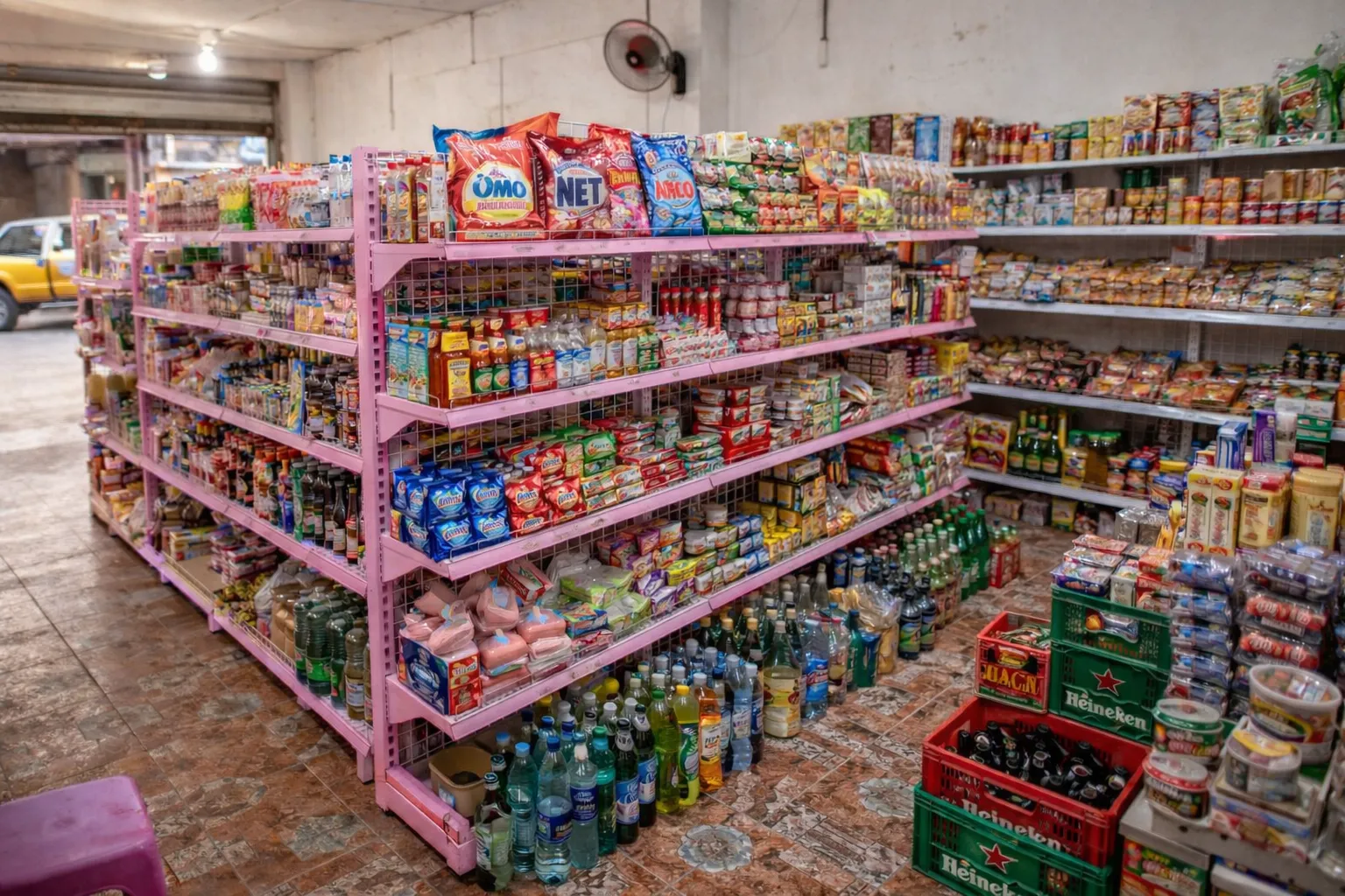 - Tận dụng sát tường, góc cửa hàng: đặt gọn gàng, không tốn diện tích mà vẫn bày được nhiều hàng.