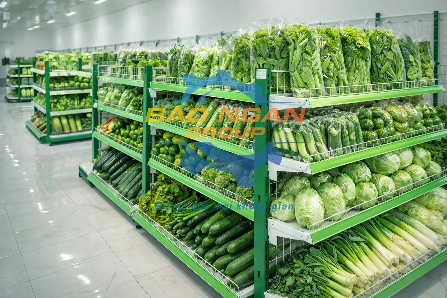 - Kệ siêu thị lưng lưới màu xanh lá phù hợp với cửa hàng thực phẩm sạch, nông sản và mô hình. Tạo cảm an toàn cho sức khỏe, tốt cho người tiêu giúp khách hàng tin tưởng vào chất lượng và nguồn gốc sản phẩm. Đặc biệt, rất phù hợp với các nhóm hàng rau củ, nông sản, thực phẩm xanh.