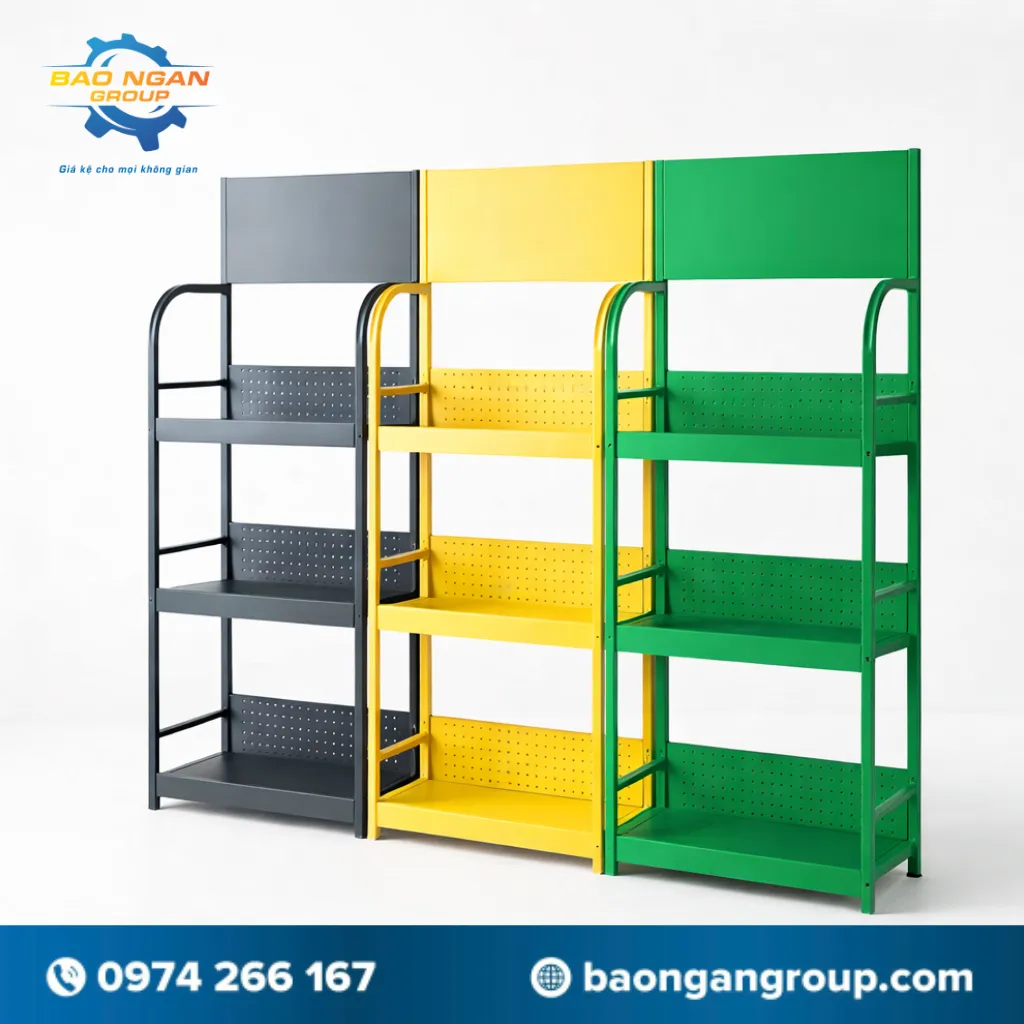 Kệ sắt không chỉ chắc chắn mà còn giúp sắp xếp sản phẩm gọn gàng, bắt mắt, thu hút khách hàng ngay khi nhìn thấy.