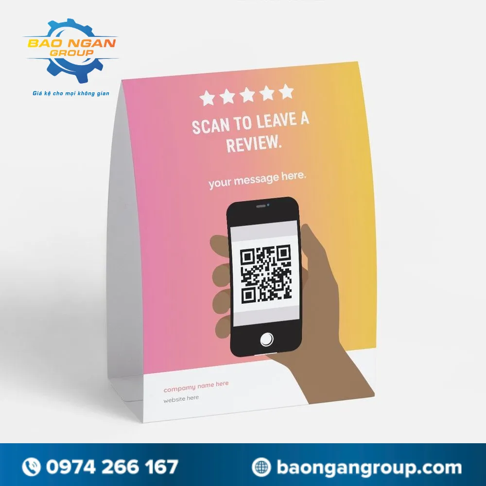 Giá kệ Bảo Ngân – Chuyên sản xuất tent card đẹp, bền, tối ưu chi phí cho doanh nghiệp.