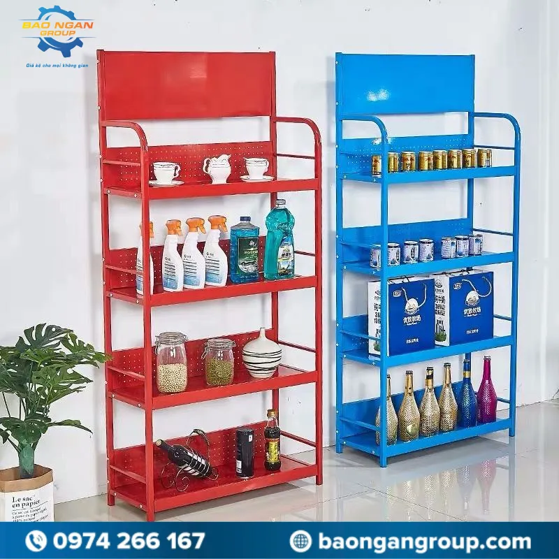 Kệ sắt không chỉ chắc chắn mà còn giúp sắp xếp sản phẩm gọn gàng, bắt mắt, thu hút khách hàng ngay khi nhìn thấy.